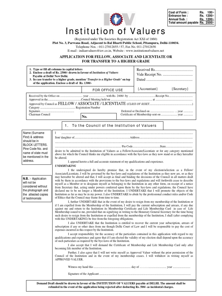 2. Enclose a draft of Rs. 2500/- drawn in favour of Institution of Valuers