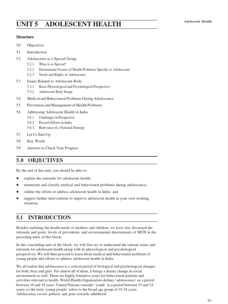 India. During the course of this unit we have uncovered and illustrated that adolescents