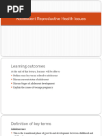 typical reproductive pattern of “too early, too frequent and too many”. 19% of total fertility Adolescent Health