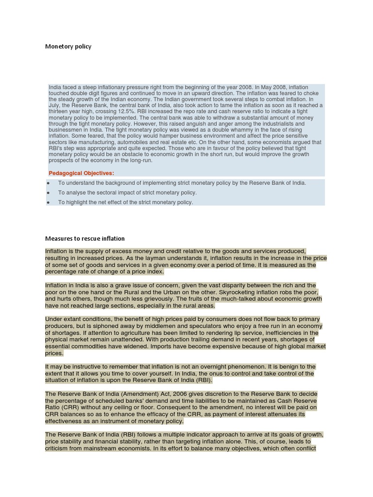 To understand the background of implementing strict monetary policy by the Reserve Bank of India.