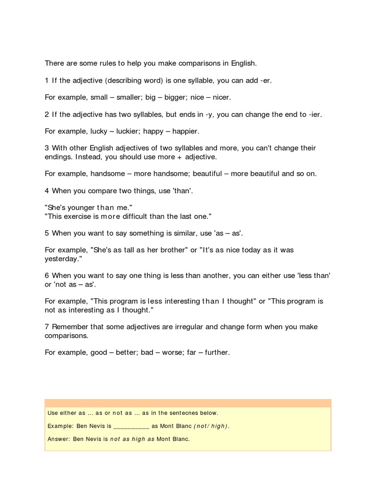 There are some rules to help you make comparisons in English.