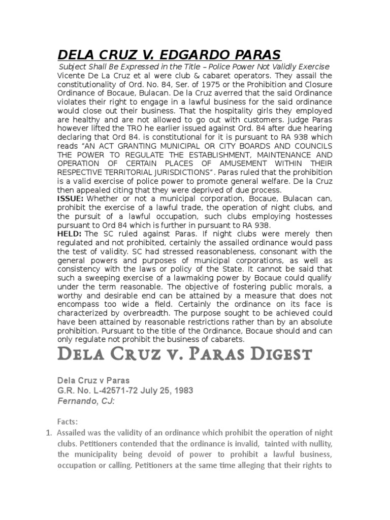 HELD: The SC ruled against Paras. If night clubs were merely then