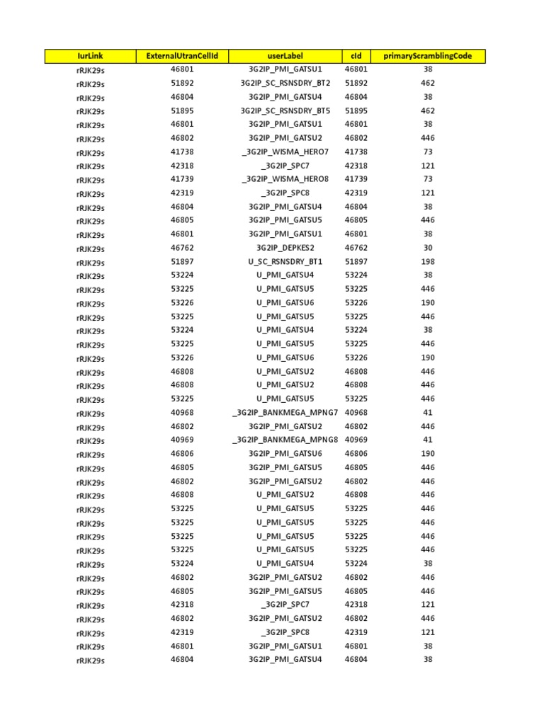 IurLink ExternalUtranCellId userLabel cId primaryScramblingCode