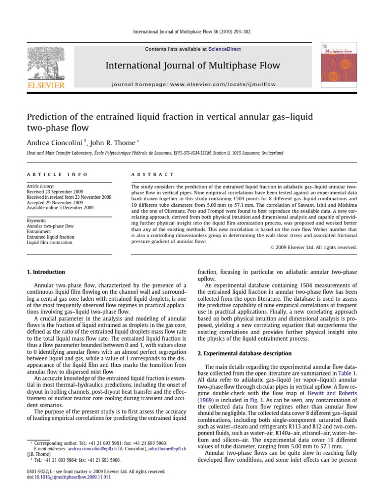 Oliemans, who is gratefully acknowledged. A. Cioncolini is sup- published correlations of entrainment ow rate through high pressure data and