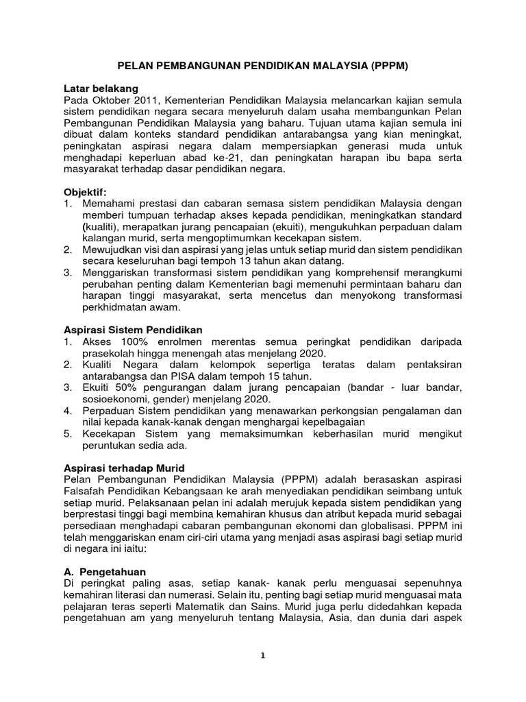 Pelan Pembangunan Pendidikan Malaysia (PPPM) adalah berasaskan aspirasi