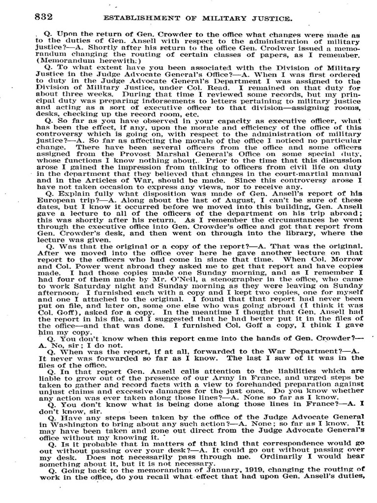 Q. You don't know when this report came into the hands of Gen . Crowder?