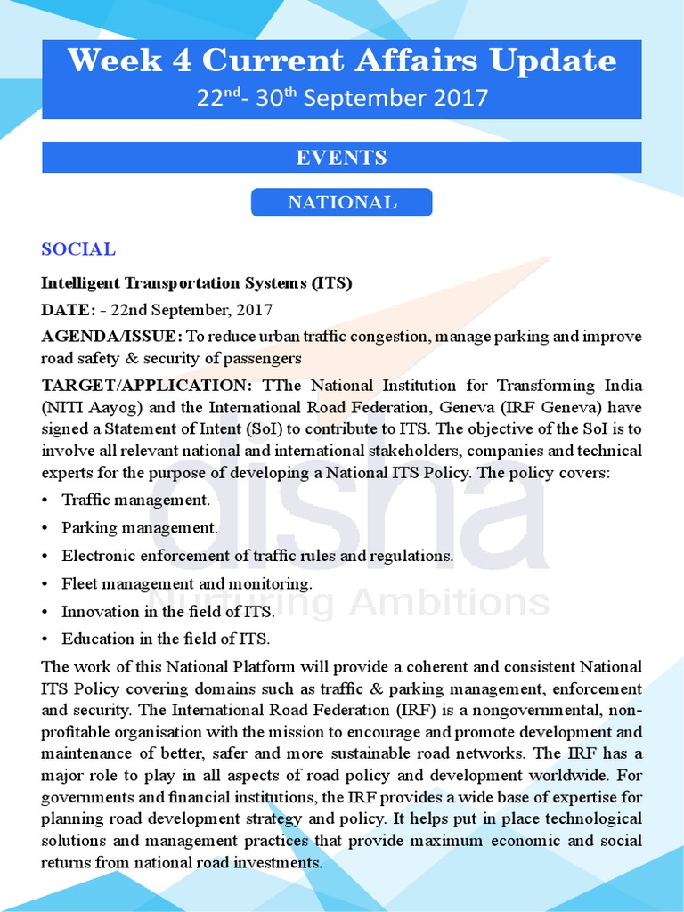 ITS Policy covering domains such as traffic & parking management, enforcement