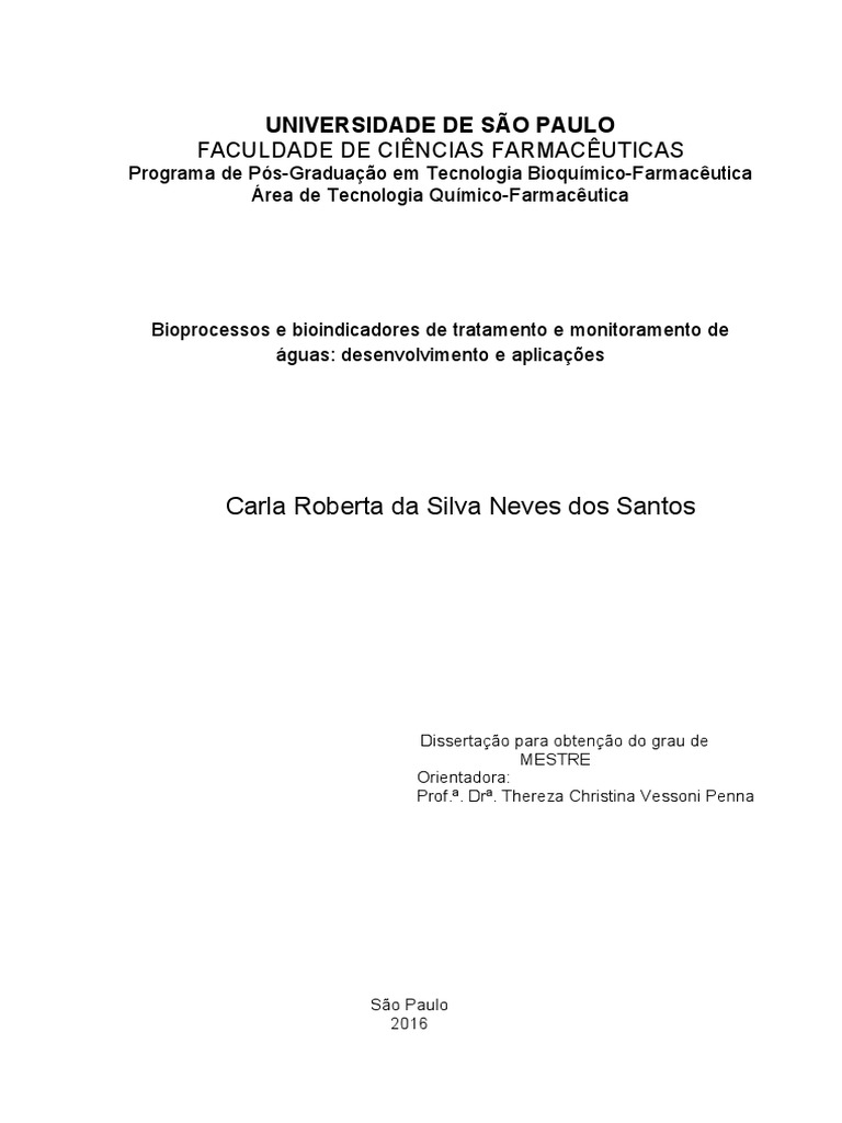 Bioprocessos e bioindicadores de tratamento e monitoramento de guas: desenvolvimento e aplicaes