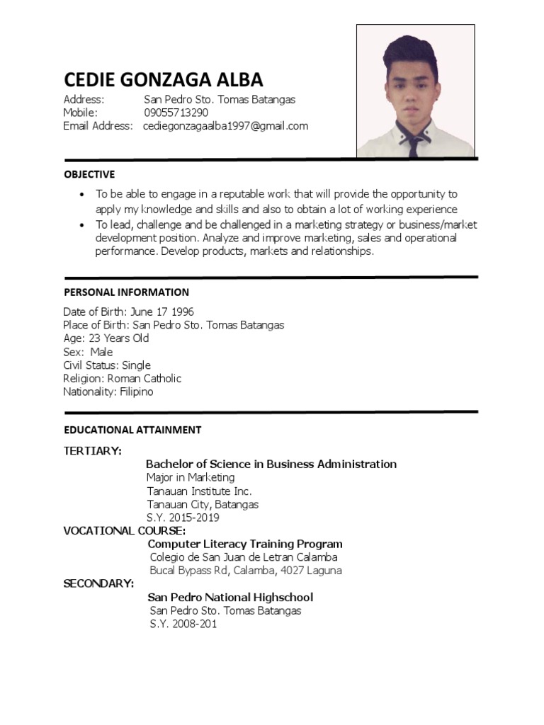 Place of Birth: San Pedro Sto. Tomas Batangas