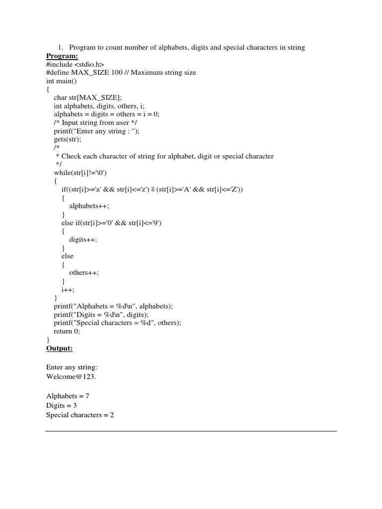 alphabets = digits = others = i = 0;