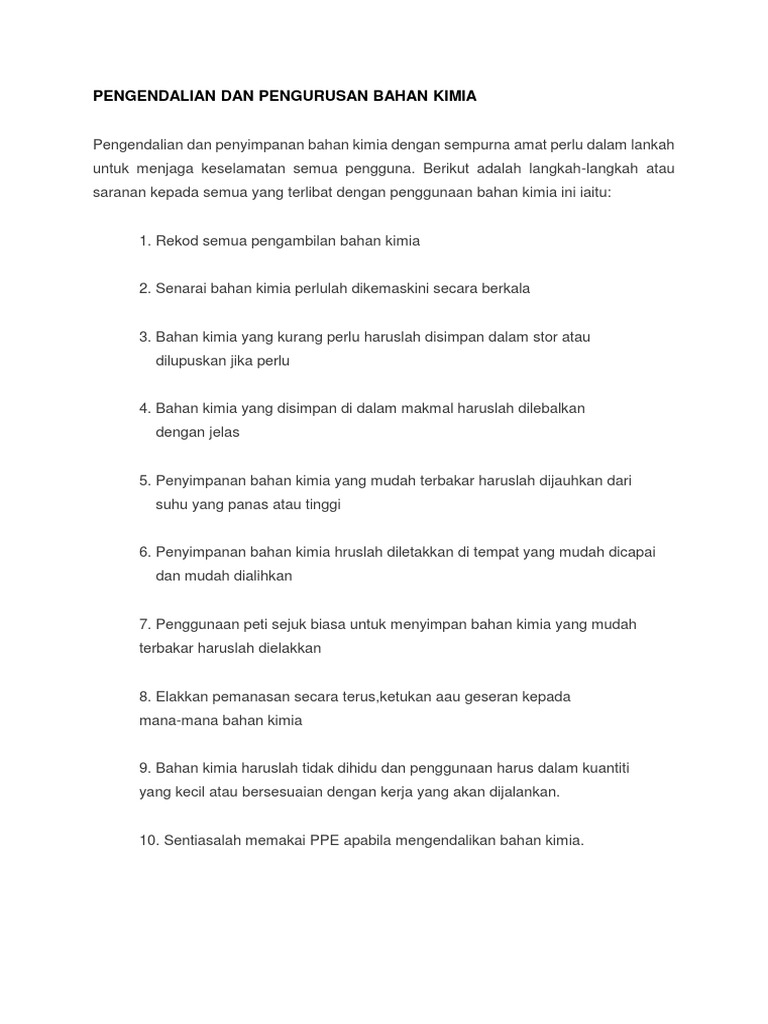 10. Sentiasalah memakai PPE apabila mengendalikan bahan kimia.
