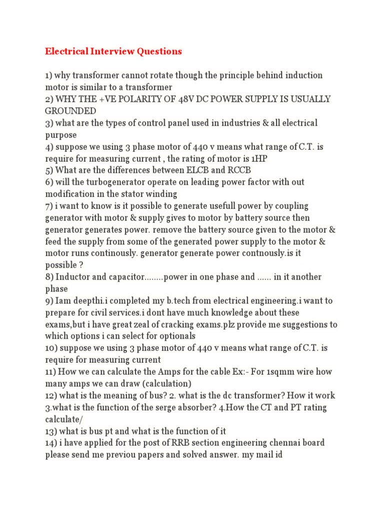 Electrical Interview Questions