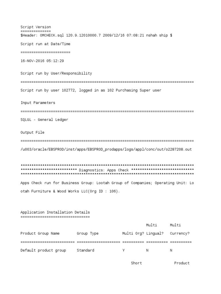 Apps Check run for Business Group: Lootah Group of Companies; Operating Unit: Lo