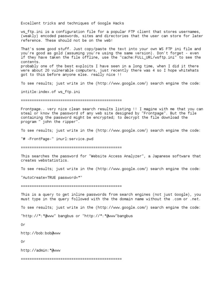 Excellent Tricks and Techniques of Google Hacks