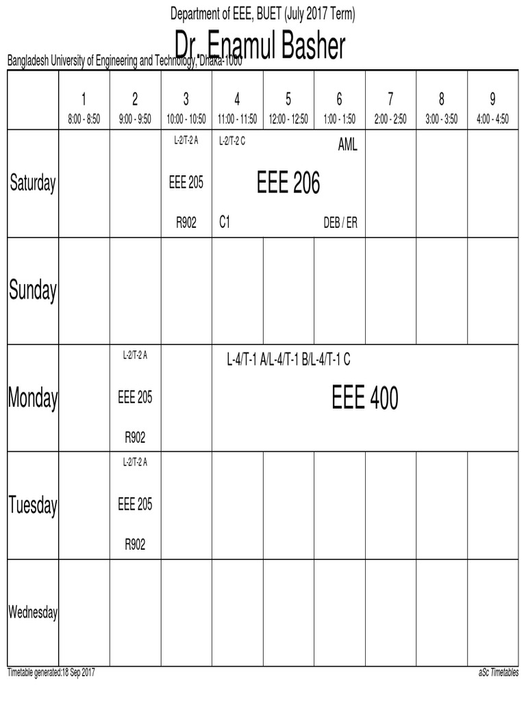 BUET EEE Department Timetable 2017
