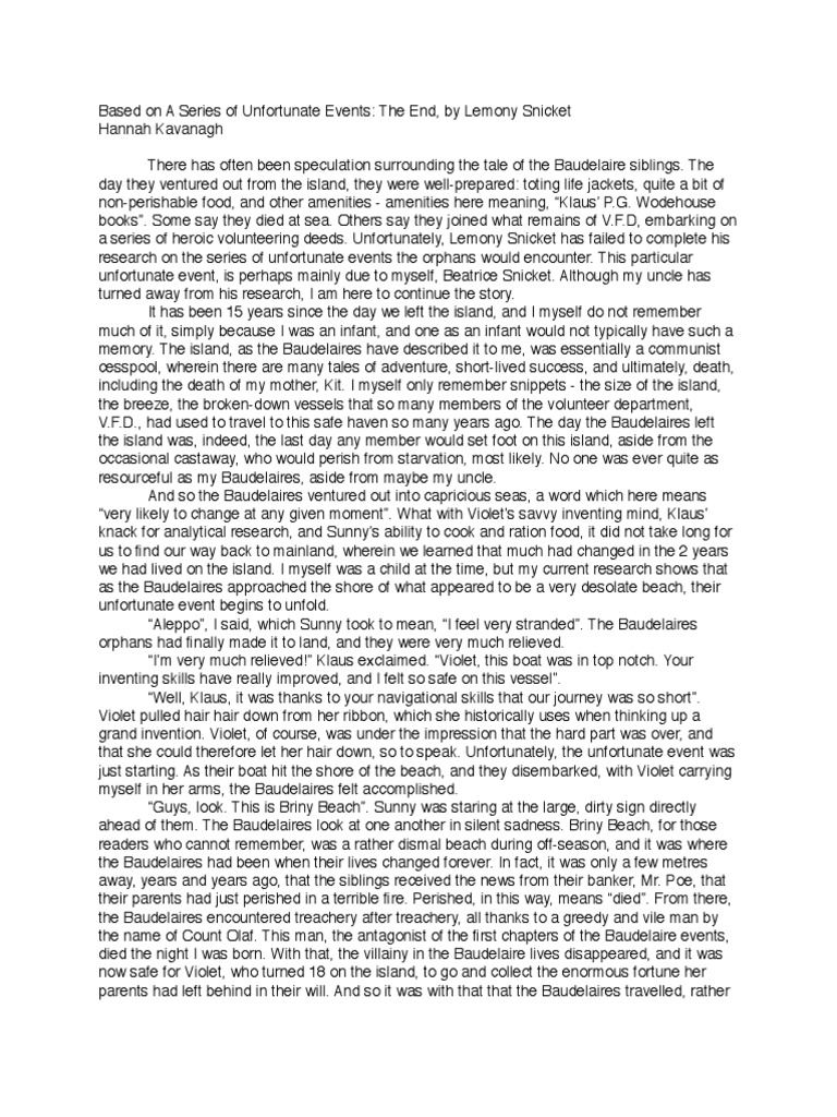 unfortunate event, is perhaps mainly due to myself, Beatrice Snicket. Although my uncle has