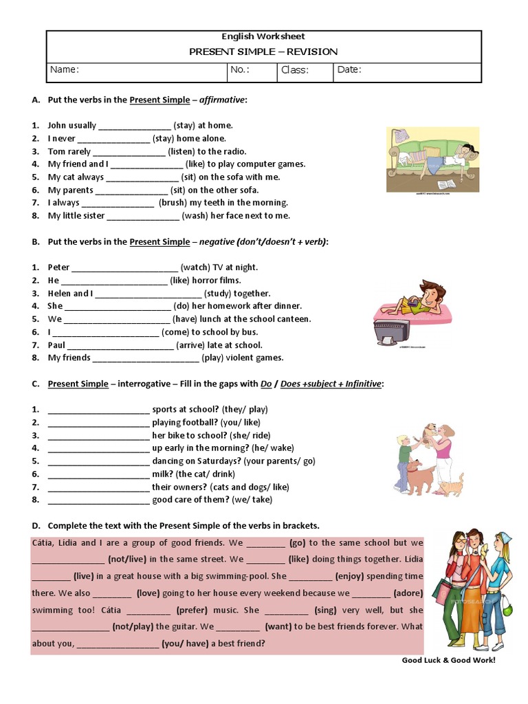 C. Present Simple interrogative Fill in the gaps with Do / Does +subject + Infinitive: