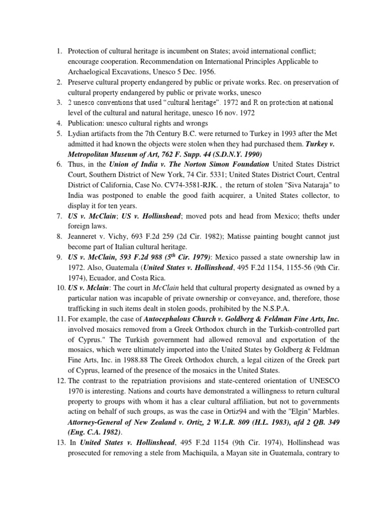 10. US v. Mclain: The court in McClain held that cultural property designated as owned by a
