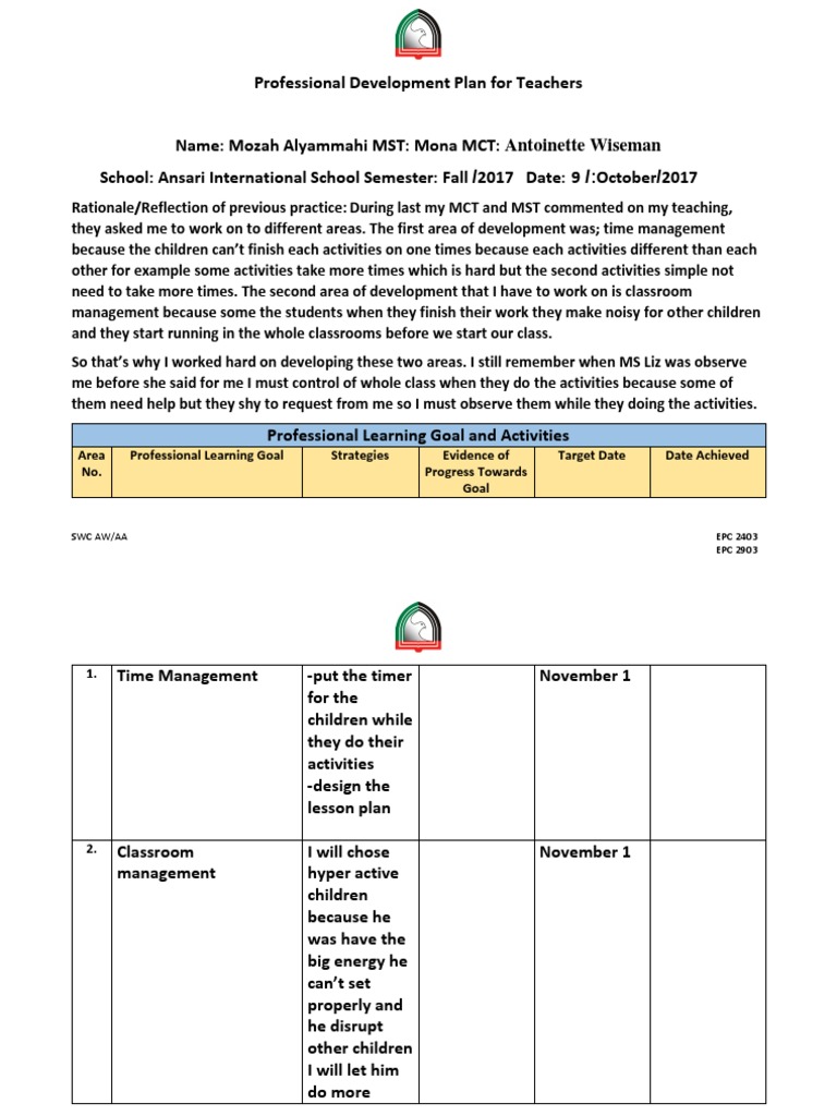 Professional Development Plan for Teachers