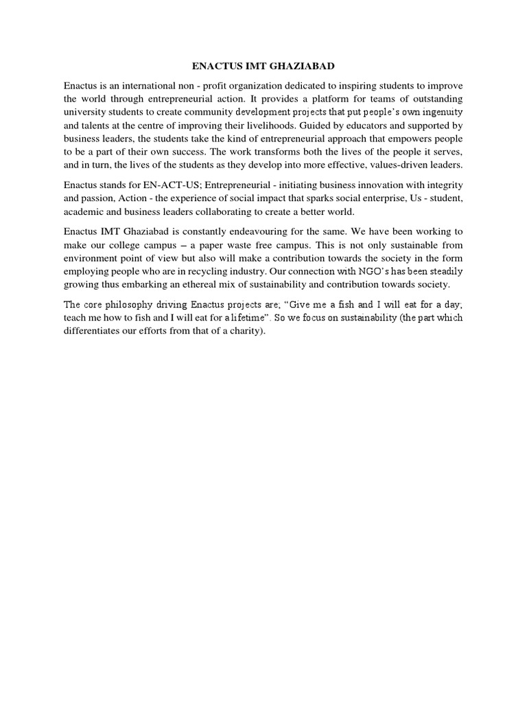 Enactus IMT Ghaziabad is constantly endeavouring for the same. We have been working to