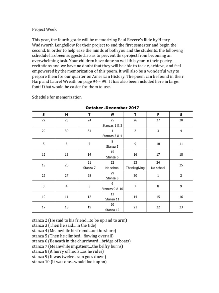 This year, the fourth grade will be memorizing Paul Reveres Ride by Henry