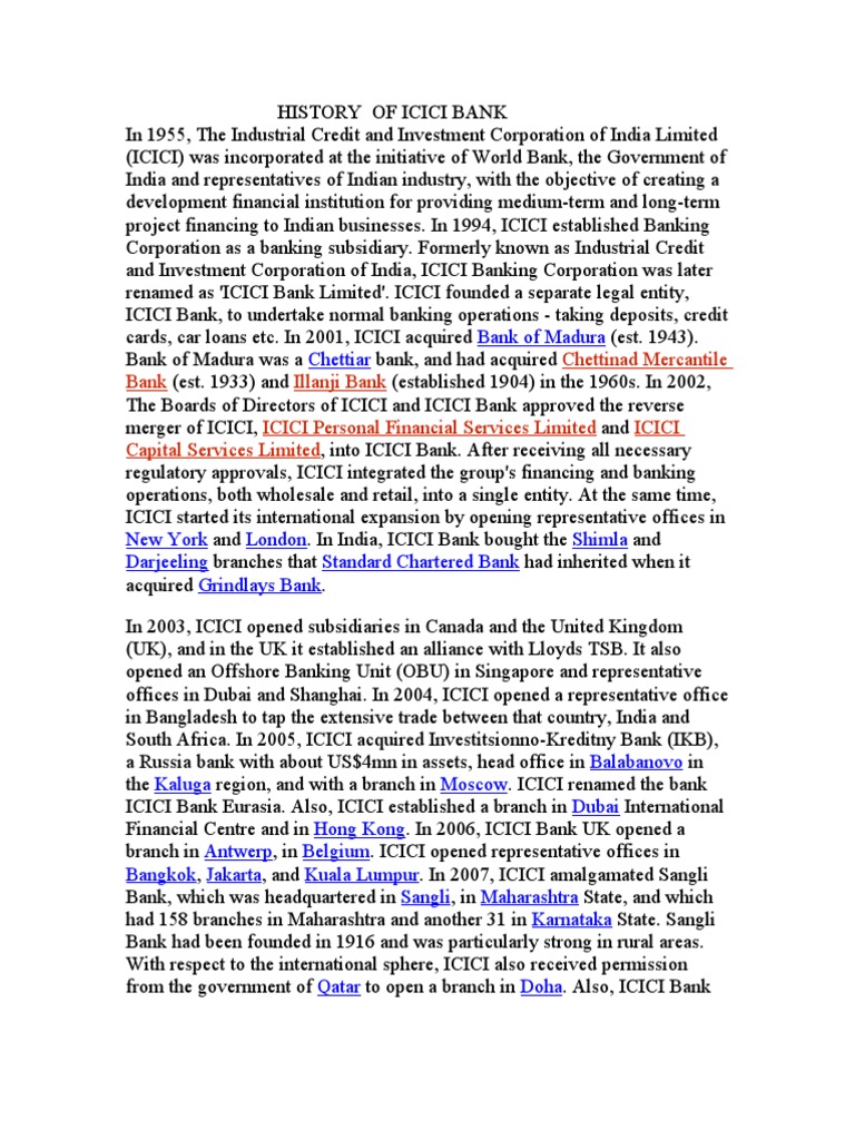 cards, car loans etc. In 2001, ICICI acquired Bank of Madura (est. 1943).