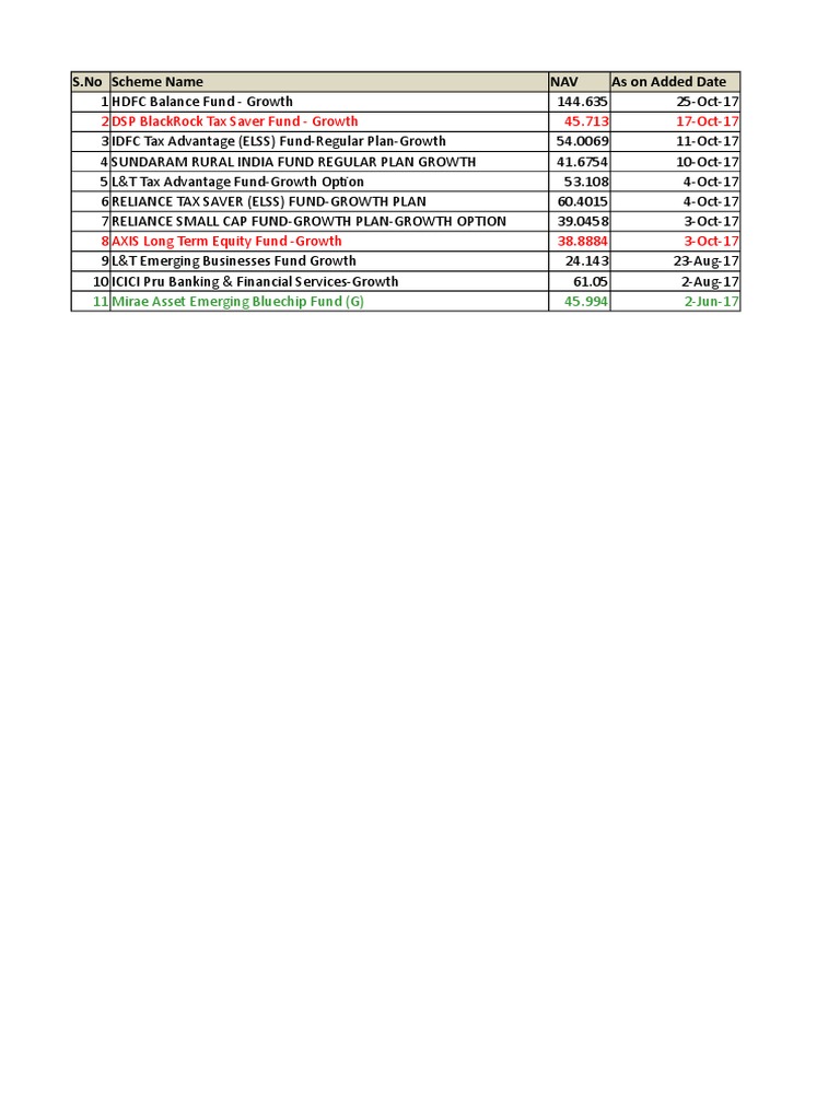 1 HDFC Balance Fund - Growth 144.635 25-Oct-17