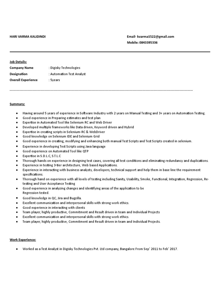 Having around 5 years of experience in Software Industry with 2 years on Manual Testing and 3+ years on Automation Testing.