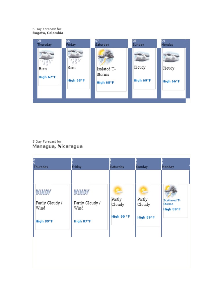 5-Day Weather Forecasts for Cities