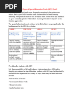 Procedure: Identify two children who have SEN and complete table 2 to highlight their needs