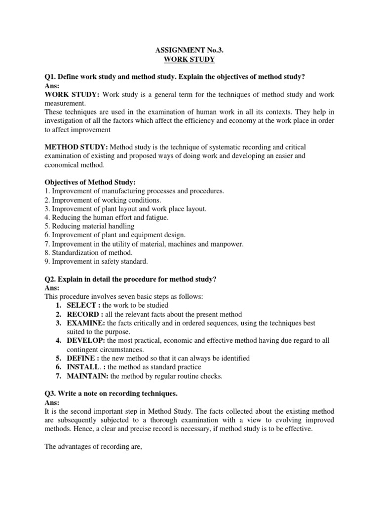 Q1. Define work study and method study. Explain the objectives of method study?