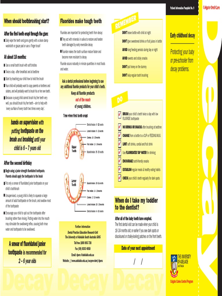 Parents should apply the toothpaste to the brush CHECK your childs teeth regularly for dark spots