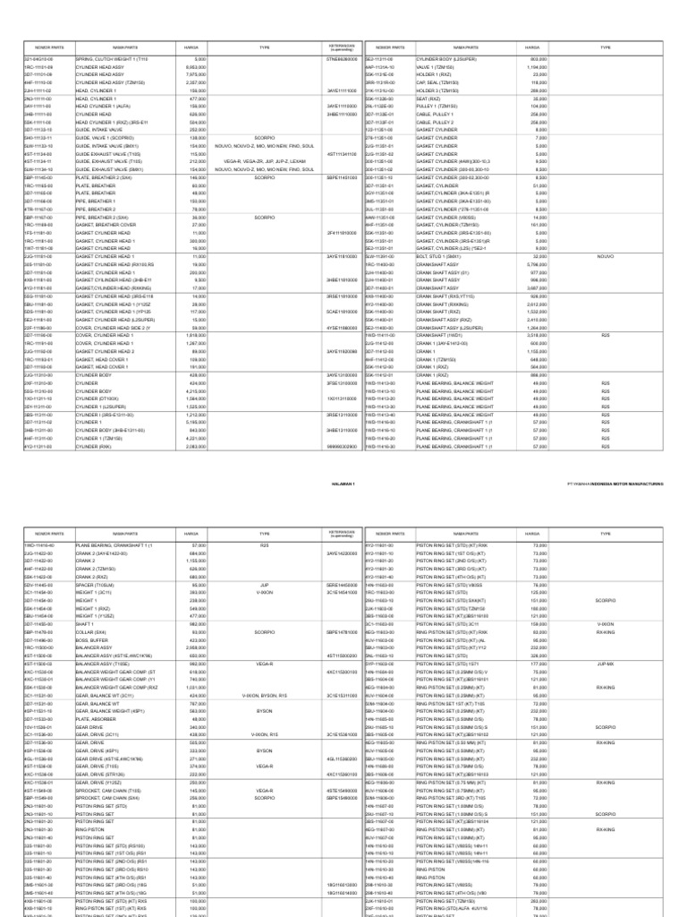 5E2-11181-00 GASKET CYLINDER HEAD (L2SUPER) 15,000 55K-11400-01 CRANKSHAFT ASSY (RXZ) 2,410,000