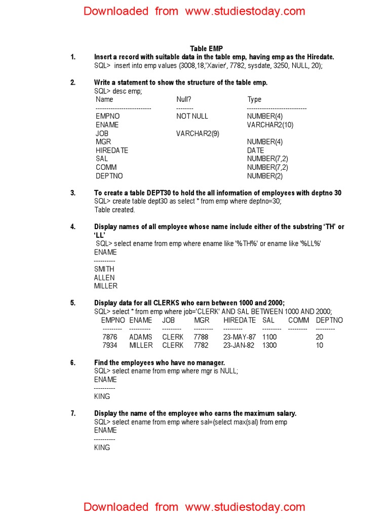 1. Insert a record with suitable data in the table emp, having emp as the Hiredate.