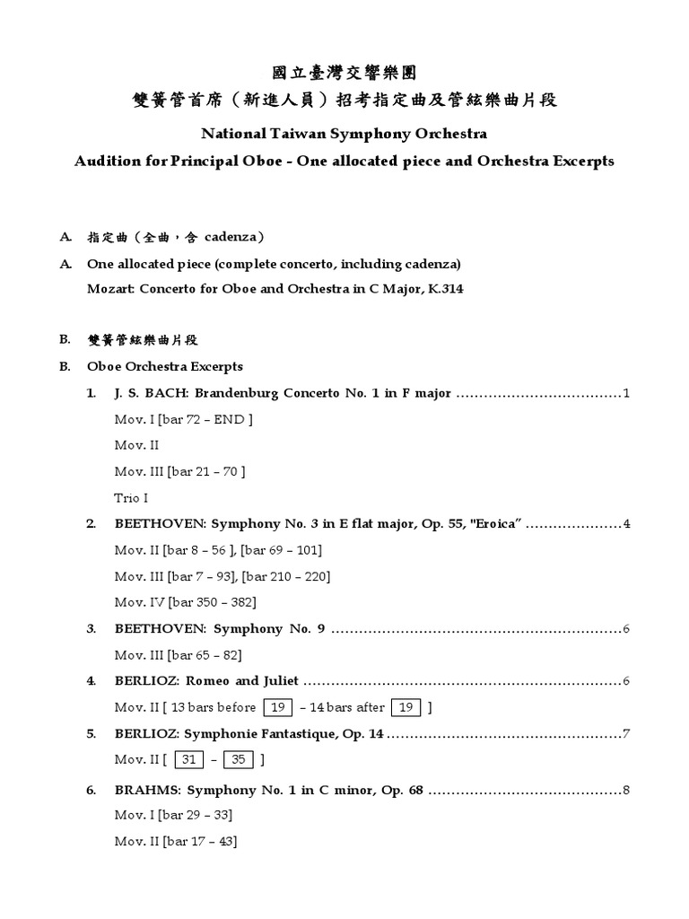 Audition for Principal Oboe - One allocated piece and Orchestra Excerpts