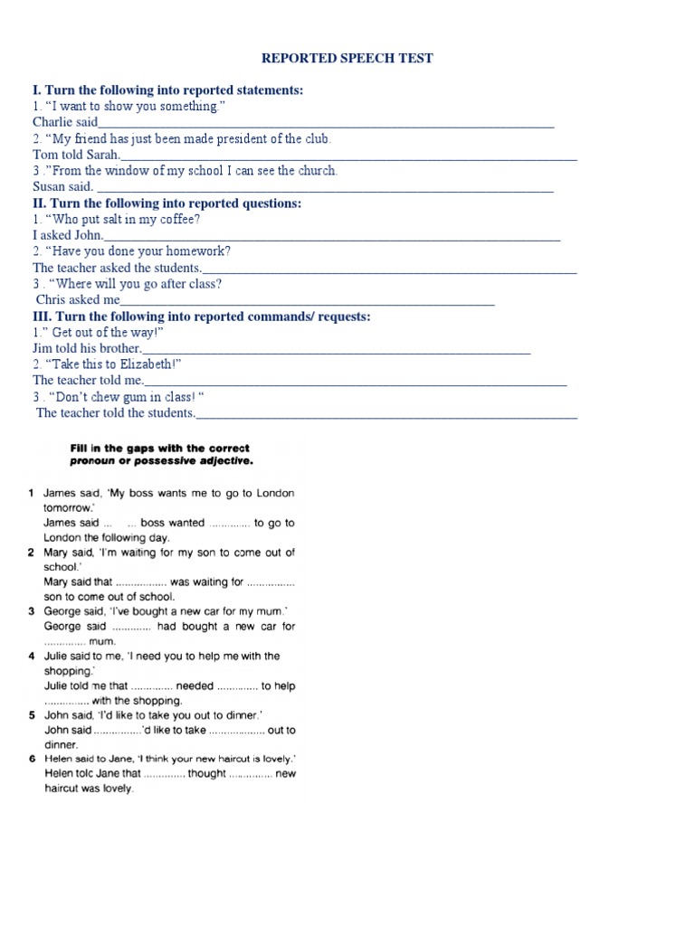 3. The teacher said to Jenny: You have to learn your grammar. (The teacher told Jenny)