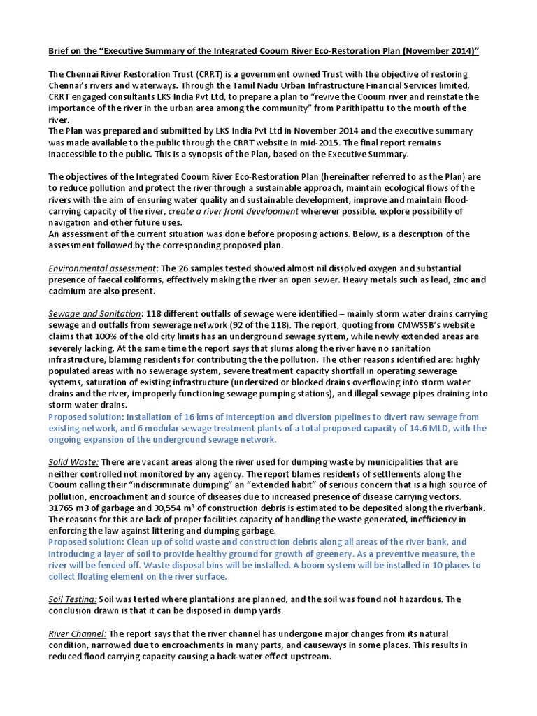 Brief on the Executive Summary of the Integrated Cooum River Eco-Restoration Plan (November 2014)