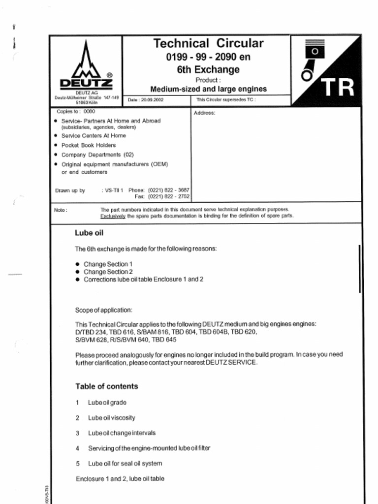 This Technica Creuse apes tothe folowing DEUTZ medium ang engltes engines: