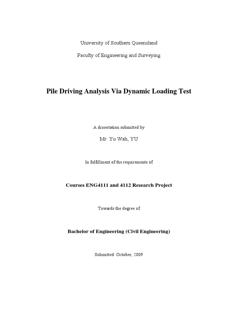PROJECT AIM: Research on the Dynamic loading test and using such data to determine /