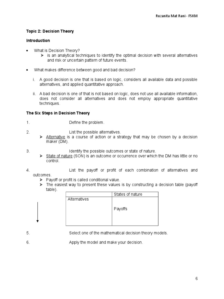 Topic 2: Decision Theory