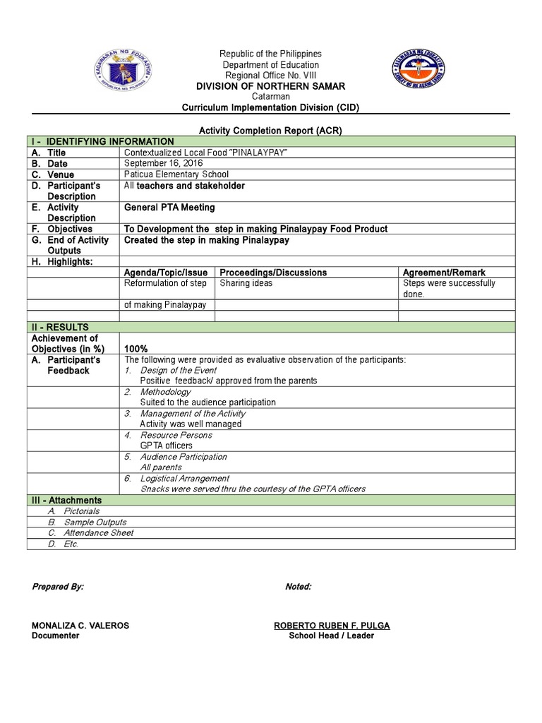 Activity Completion Report (ACR)
