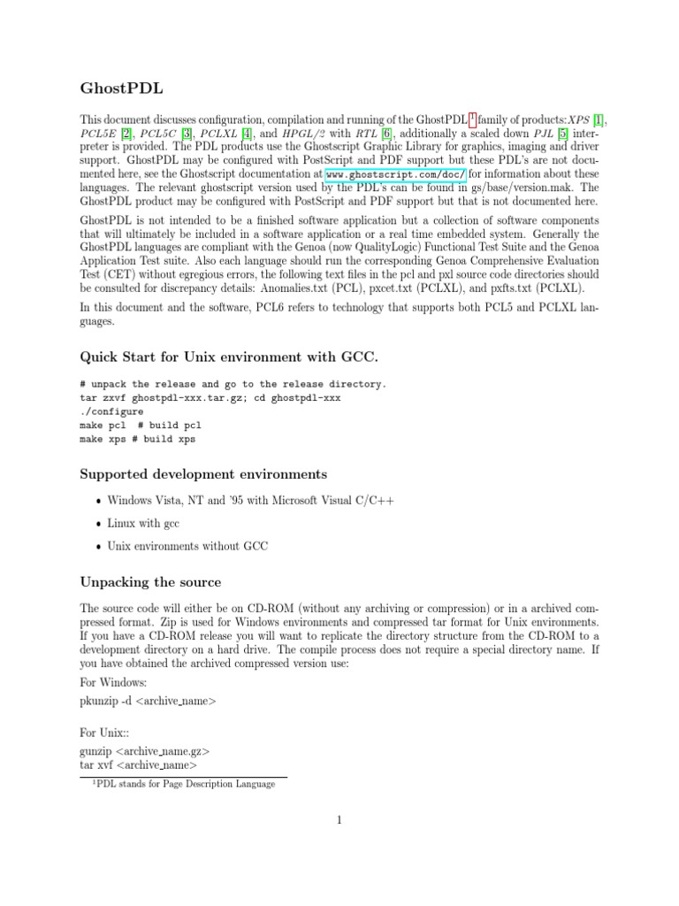 support. GhostPDL may be configured with PostScript and PDF support but these PDLs are not docu-