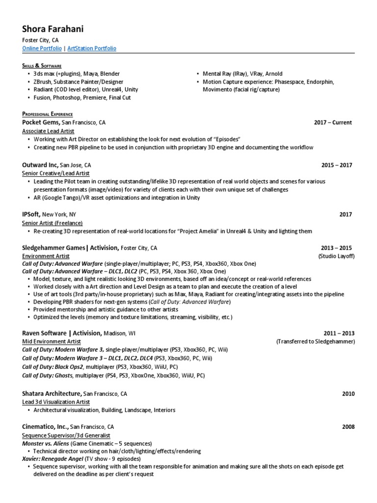Sledgehammer Games| Activision, Foster City, CA 2013 2015