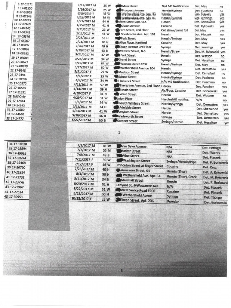 OPIOID DEATHS IN HARTFORD OVERDOESES AS OF 11 4 2017