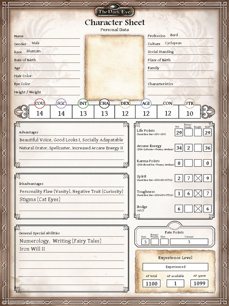 Natural Orator, Spellcaster, Increased Arcane Energy II (20 for Spellcaster + Primary Attribute) 34 2 36