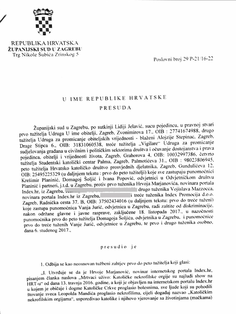 Županijski sud u Zagrebu donio je presudu kojom je spriječen pokušaj fundamentalista da na mala vrata uvedu kažnjavanje bogohuljenja