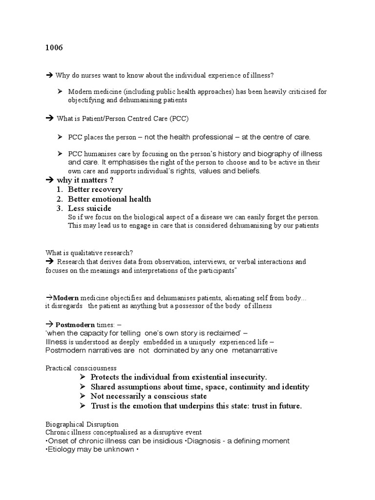 PCC humanises care by focusing on the persons history and biography of illness