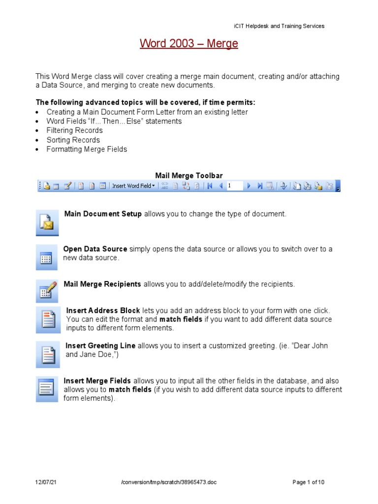 This Word Merge class will cover creating a merge main document, creating and/or attaching