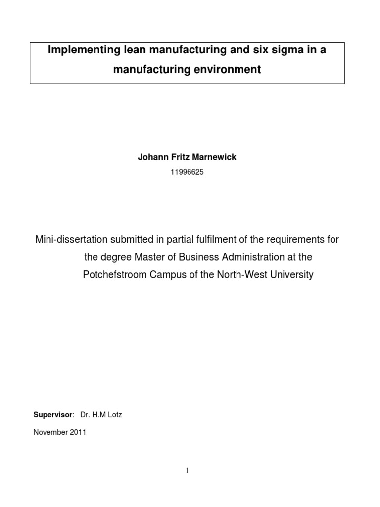 The application of Lean Six Sigma in the manufacturing environment is not new, yet so many