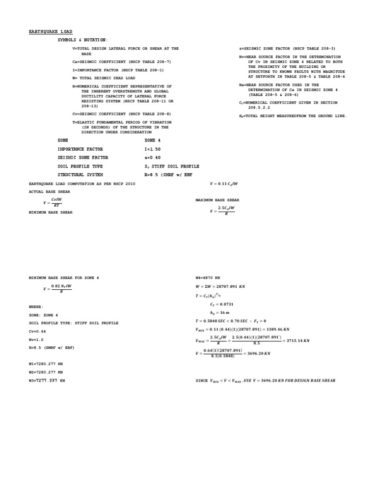 EARTHQUAKE LOAD COMPUTATION AS PER NSCP 2010 = .